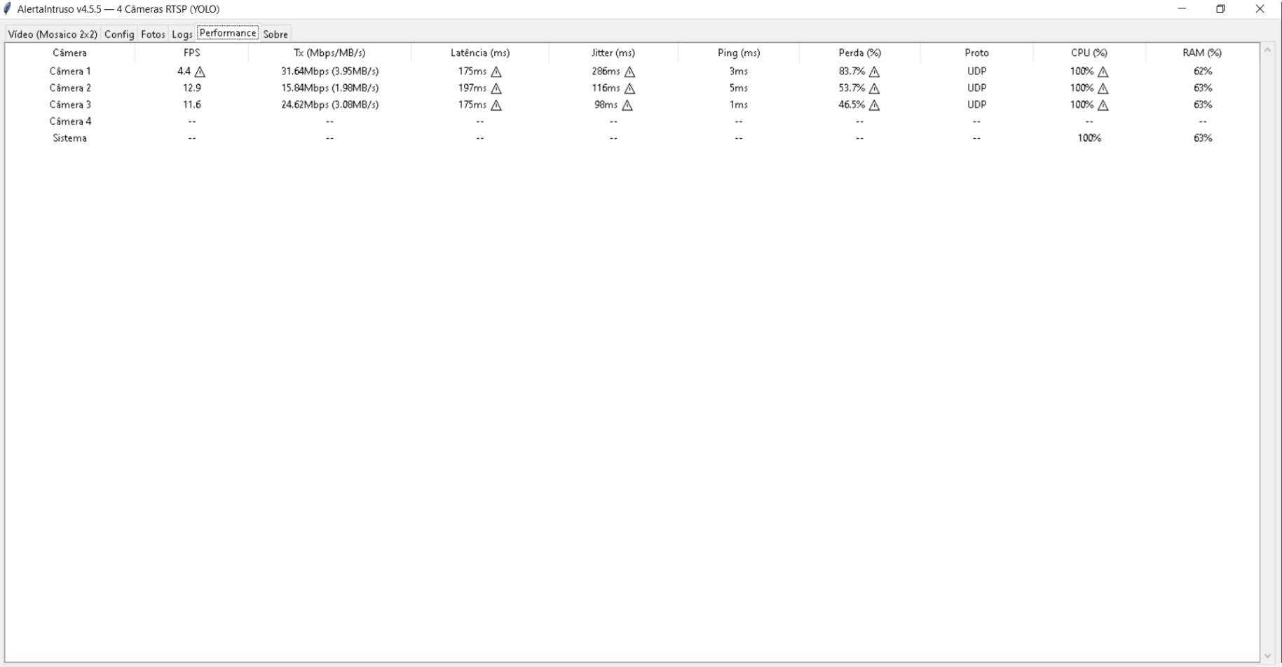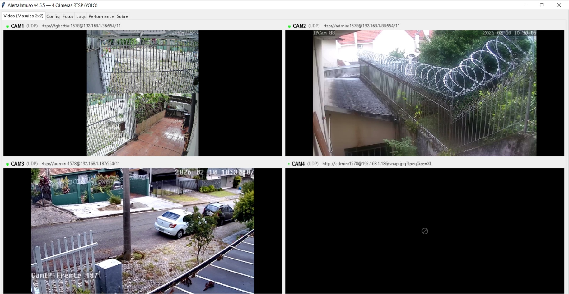 Multicâmera Até 4 câmeras IP simultâneas (RTSP)