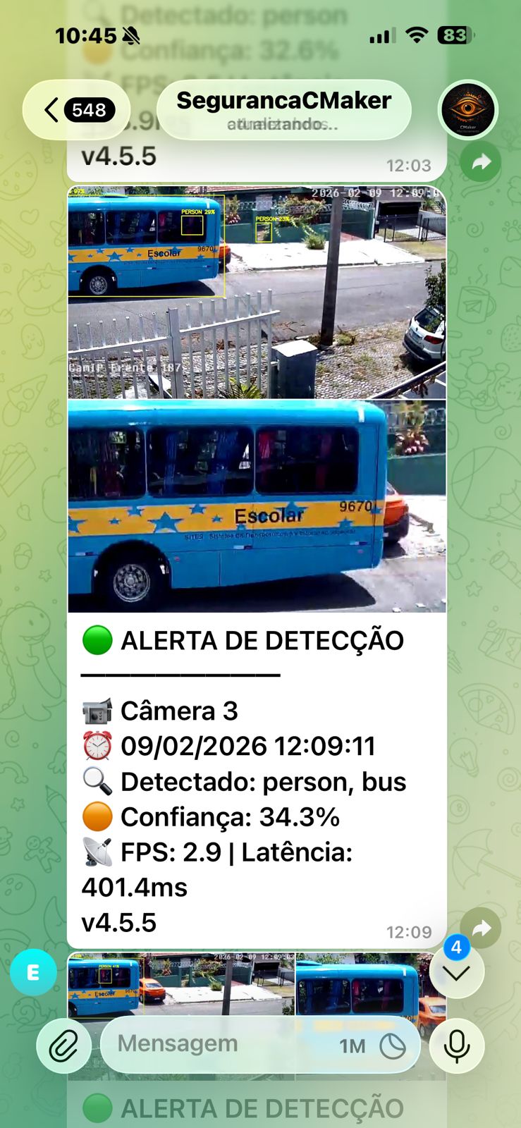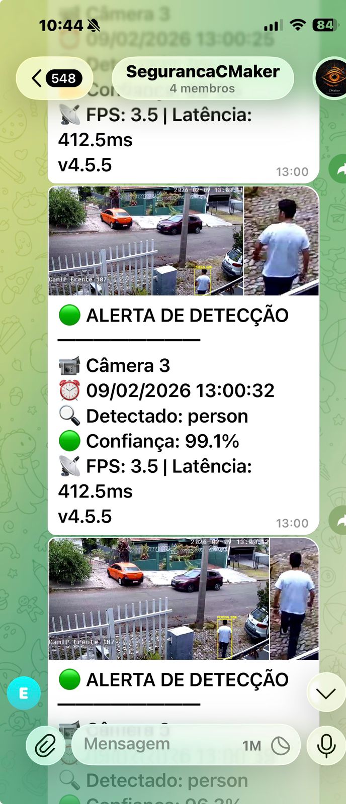 Um dos principais diferenciais do AlertaIntruso é o envio automático das imagens das detecções para o Telegram.